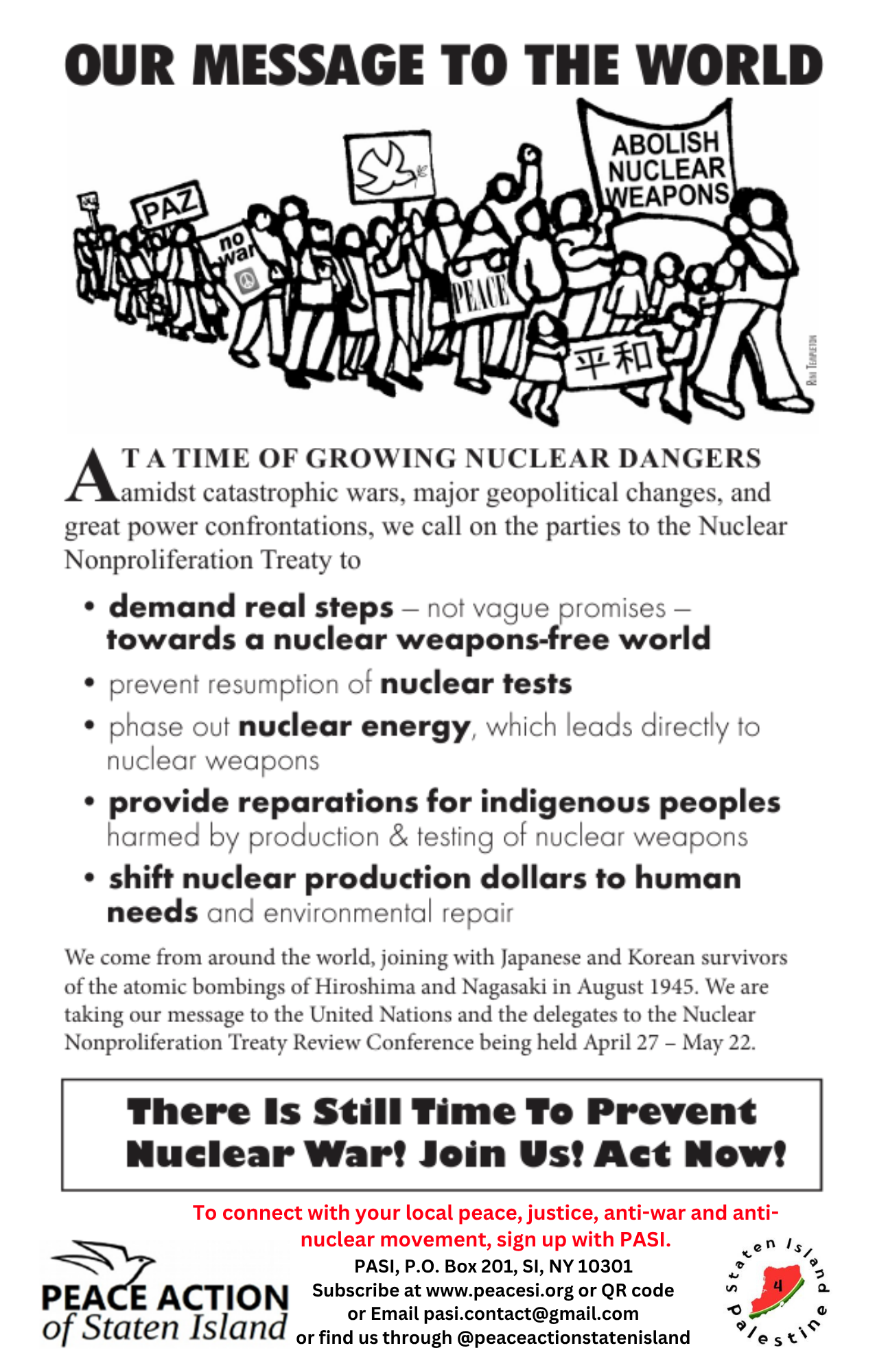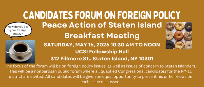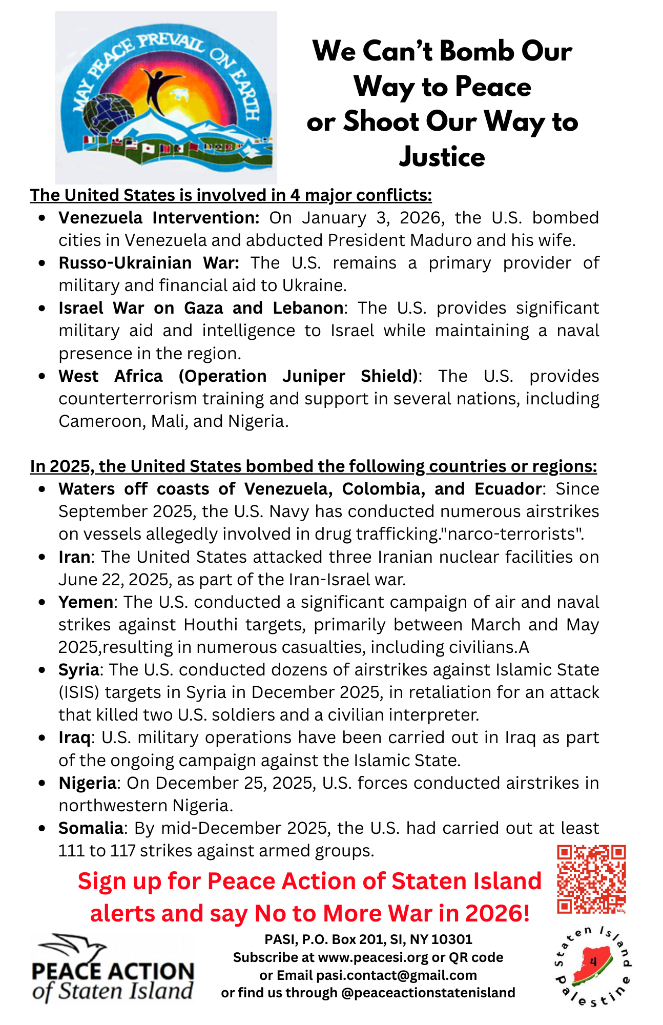 Peace Action of Staten Island, P. O. Box 201 St. George Station, Staten Island, NY 10301